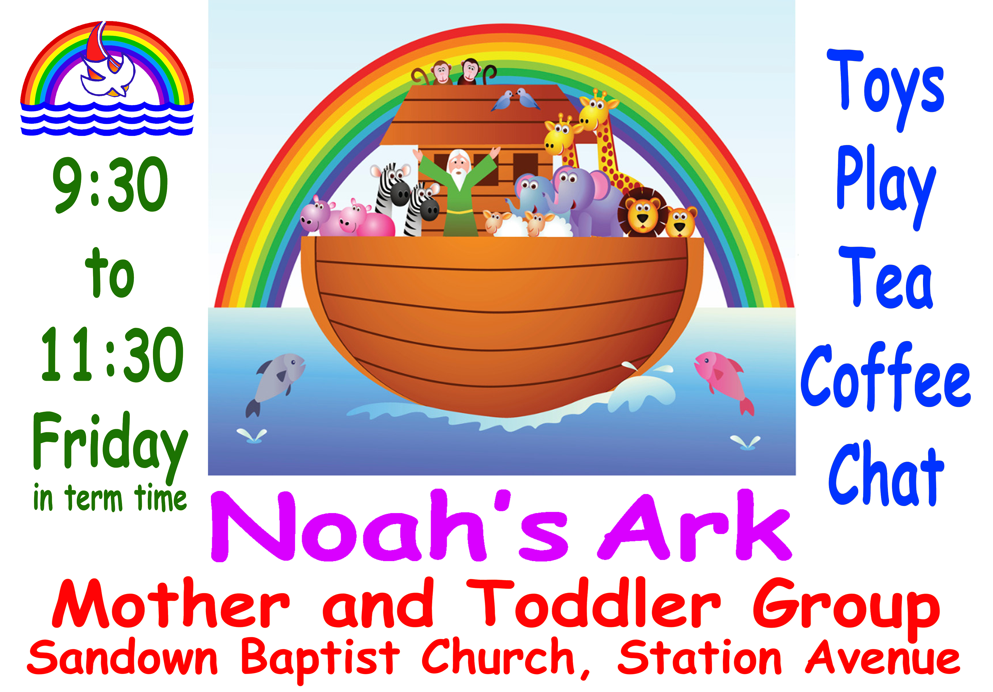 On Friday mornings in term time we have Noah's Ark, our group for toddlers and their carers. Click on the picture on the right to find out more.